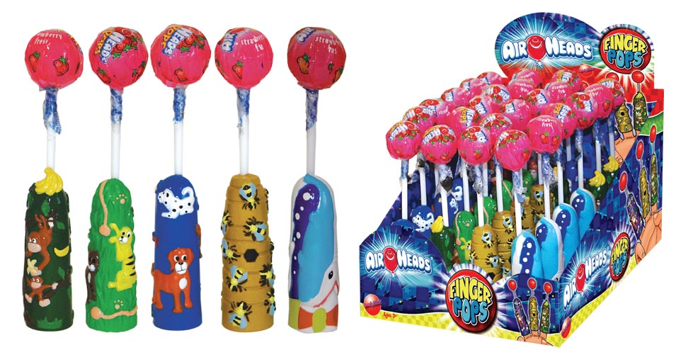 Item 7194: These fun every day finger pops are packed with a great tasting Airhead sucker. Packed (6) 24 count displays per case
