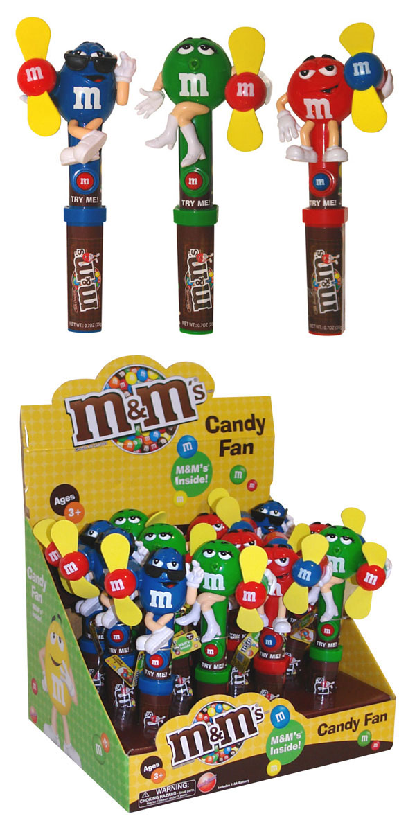 Item 10108: Your favorite M&M characters featured with powerful, child-safe fans. M&M's in the handle. Packed (6) 12 count displays per case.