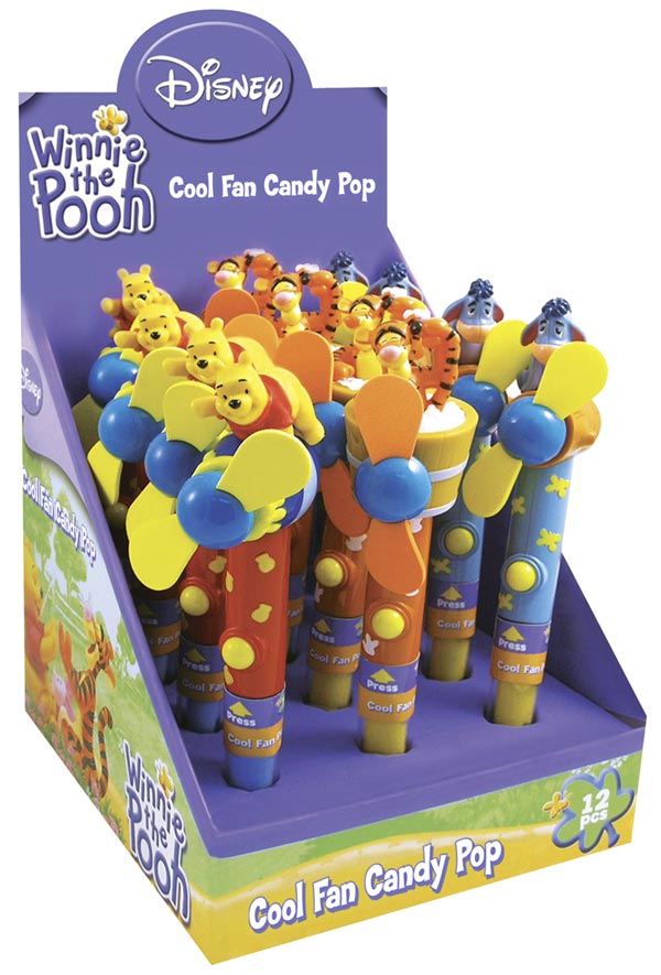 Item 4544: Tweety looks cute as the powerful, child safe fan spins. Lollipop in the handle. All natural, nothing artificial! Packed (6) 12 count displays per case